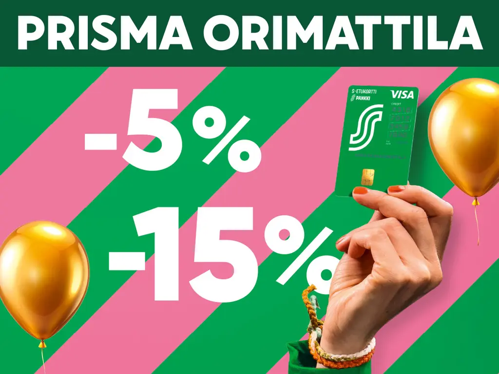 Asiakasomistajapäivät 3.-6.4.2025 Prisma Orimattilassa! Saat S-Etukortilla JOPA -15% alennusta käyttötavaroista, myös jo alennetuista hinnoista!Alennuksen saat S-Etukortilla näistä tuotteista:-5% alennusta- polkupyörät
