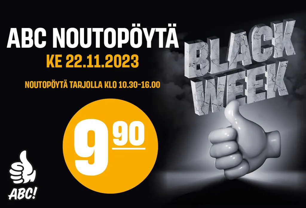 BLACK WEEK KE 22.11. ABC noutopöytä 9,90€!