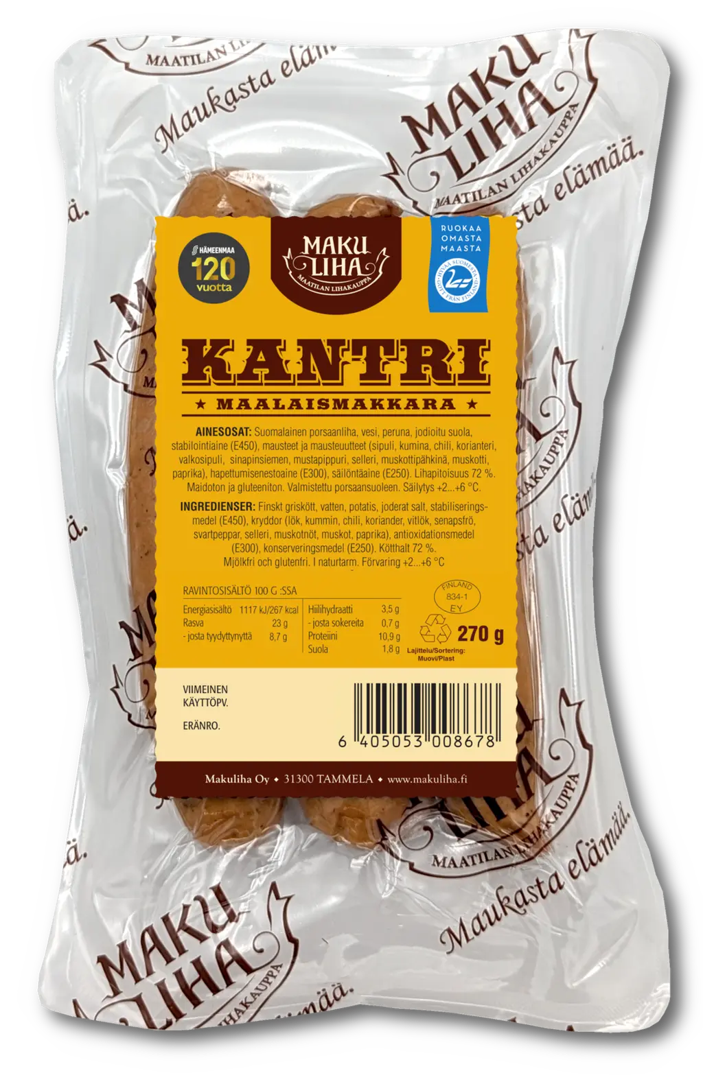 Makuliha Tilapuoti Cafe & Wine on Forssan ja Hämeenlinnan naapurikunnassa Tammelassa sijaitseva vuonna 1991 perustettu perheyritys. Makuliha valmistaa käsityönä erikoismakkaroita, leikkeleitä ja muita lihaisia herkkuja Tammelan Kärsäkujan maatilalla. Suomalaisesta lihasta ja aidoista raaka-aineista syntyy jatkuvasti uusia, jäljittelemättömiä makuelämyksiä.– Toimme juhlavuoden tuotteeksi uudelleen tarjontaan suositun grillimakkaran ja uudistimme pakkauksen. Se sopi Hämeenmaalle nimensäkin (Kantri) puolesta hyvin, myyntipäällikkö Pasi Kauppinen kertoo.Salpausselän Kala ”Savumestarin Savumuikkumousse” & ”Savumestarin Savuinen Järvikalaherkku”