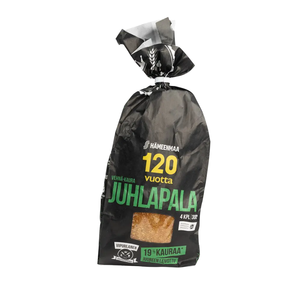 Viipurilainen Kotileipomo Oy on lähiraaka-aineisiin, juureen leipomiseen ja käsityöläisyyteen panostava perheleipomo. Heidän arvoissaan näkyy yhteistyö, paikallisuus ja hyvä maku. Viipurilainen leipomokahvila sijaitsee Vääksyssä. Palaleivät ovat olleet Viipurilaisella suosikkituote, joten valinta juhlavuoden tuotteesta oli selvä.– Juhlavuoden tuote syntyi koeleipomuksia tekemällä, ja reseptiikka löytyi nopeasti. Juhlapalan makumaailman jalustalle nostimme kauran, ja mielestämme onnistuimme siinä hienosti. Juhlapala tuo leveyttä tuotevalikoimaamme ja saa myös kivasti näkyvyyttä. Tuote on myös erilainen kuin meidän omassa kauppavalikoimassamme olevat tuotteet, kommentoi Viipurilaisen tuotekehittäjä Teppo Ylä-Hemmilä.Viipurilainen Kotileipomo täyttää tänä vuonna 100-vuotta.– On hienoa juhlistaa juhlavuosia yhteisellä tuotteella. Toivomme, että yhteistyömme Hämeenmaan kanssa voi jatkua vähintään seuraavatkin sata vuotta ja sitoudumme siihen koko ketjussa. Teemme työtä paikallisen elinvoiman ja puhtaan lähiruoan eteen suurella sydämellä, Ylä-Hemmilä jatkaa.Pekan Leipä ”Juhlaleivos”
