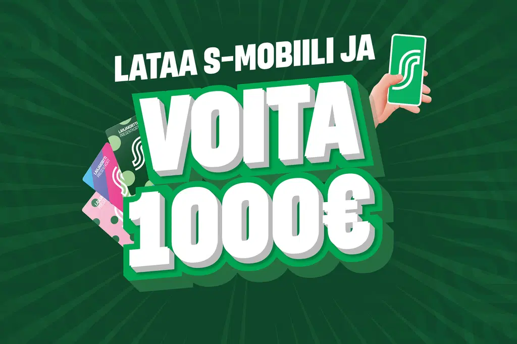 Uusien S‑mobiilin lataajien kesken arvomme 1000 € arvosta S‑ryhmän lahjakortteja.