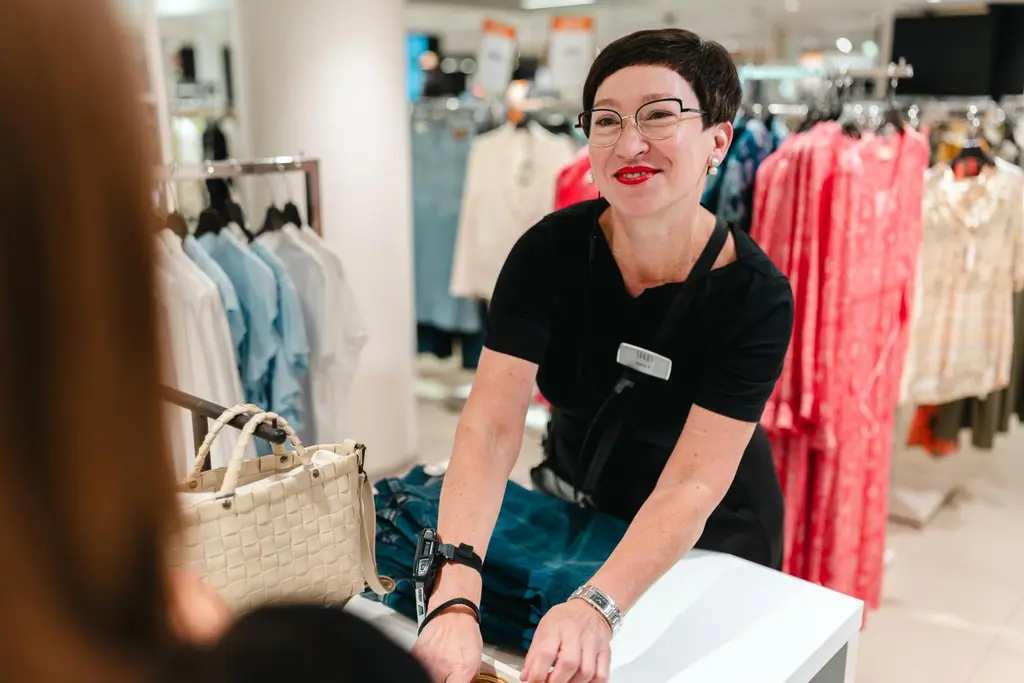 Tapaan Elena Pervaian hänen työpaikallaan Sokoksen pukeutumisen osastolla. Olen valmistautunut Sokos Lahden ilmaiseen palveluun, pukeutumisneuvontaan, Elenan ytimekkäiden ohjeiden mukaisesti: ottamalla mukaan sukkahousut."En valitse mitään asiakkaalle etukäteen. Vaikka asiakas laittaisi pitkän listan siitä millainen hän on, niin tykkään tutustua kasvotusten ja tutkia, mikä hänelle sopisi. Tietenkään en valitse mitään sellaista, mitä asiakas kieltää – jos vaikkapa kukkakuvio on ehdoton ei, niin silloin sellaisia ei soviteta. Tarkoituksenani ei ole muuttaa kenenkään tyyliä, se olisi stylistin hommaa. Minä annan asiakkaalle neuvoja ja rohkaisen kokeilemaan uutta", Elena kertoo hymyillen.Elena tutkailee minua ja pyytää avaamaan villakangastakkiani, jotta näkee mitä kokoa ja vartalotyyppiä olen. Saankin kuulla olevani tiimalasivartalon edustaja – vyötäröä kannattaisi siis korostaa!"Oman vartalomallin tunnistaminen todella vaikuttaa siihen, miten vaatteet istuvat ja millaisia asuja kannattaa suosia", Elena tietää."Tykkään katsoa ihmistä aina silmiin, koska niistä yleensä näkee hyvin, mitkä värit voisivat sopia. Hiukset saattavat olla värjätyt, joten niihin en kiinnitä suuremmin huomiota. Osaan katsoa mitkä värit asiakkaalle sopivat ja mikä vuodenaika hän on, mutta en tee virallisia värianalyyseja, sillä niitä varten tarvitsisi olla meikittä ja ihan luonnonvalossa", hän jatkaa.Olemme sopineet tunnin agendaksi juhlakauden pukeutumisen, mutta Elenan pakeille voi saapua kaikenlaisissa pukeutumiseen liittyvissä tilanteissa – hakemaan vaikkapa vinkkejä arkipukeutumiseen."Tai jos on kotona jokin vaate, jonka kanssa kaipaa apua, kun ei tiedä mihin yhdistäisi sen", Elena kertoo.Seuraavaksi lähdemmekin yhdessä kiertämään myymälää. Usein pukeutumisneuvonnan asiakas saa kuitenkin mennä sovituskopeille rauhassa odottelemaan, kun Elena etsii ja tuo vaatteet.